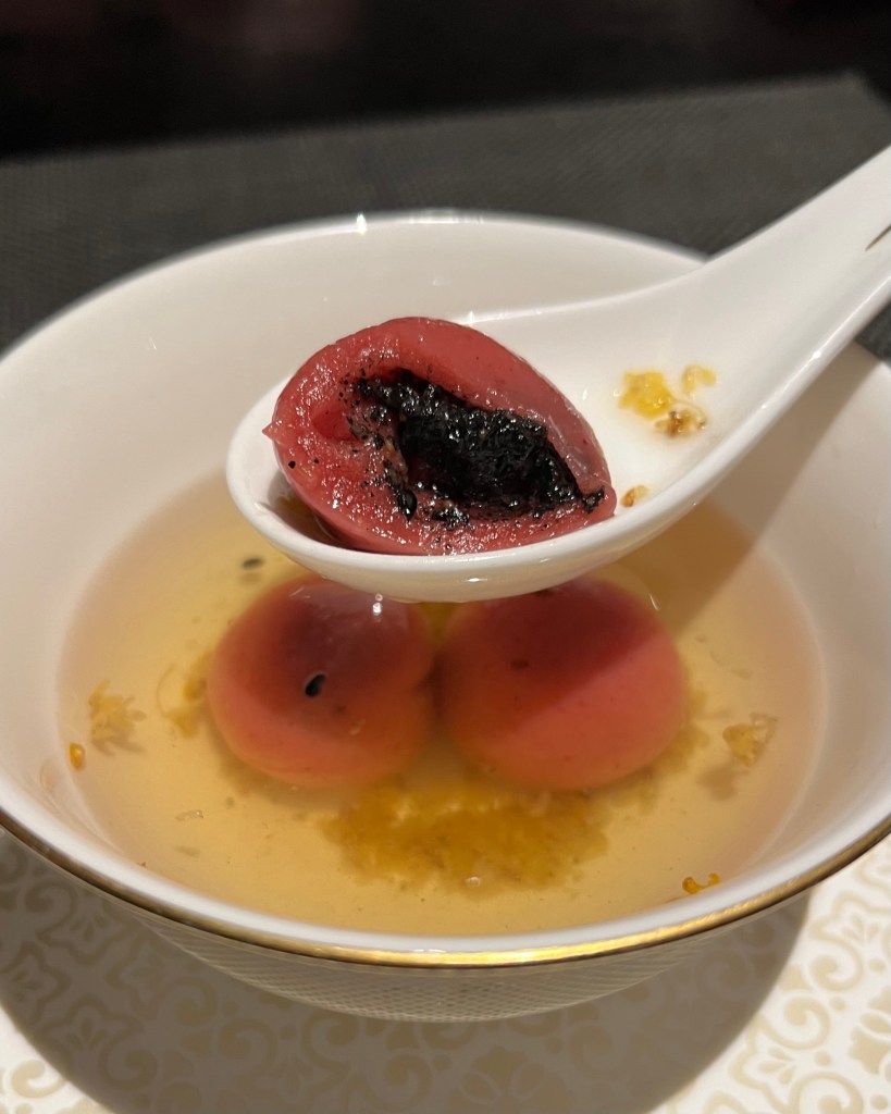 Another one that REALLY really got my attention and my husband’s is the Black Sesame Glutinous Rice Balls! Am I drinking tea? Is it a sweet soup? What is it on my mouth? It was like having a sweet treat while drinking your fragrant tea. Lovely pairing of osmanthus flowers and the umami flavor of black sesame seeds. A MUST TRY!